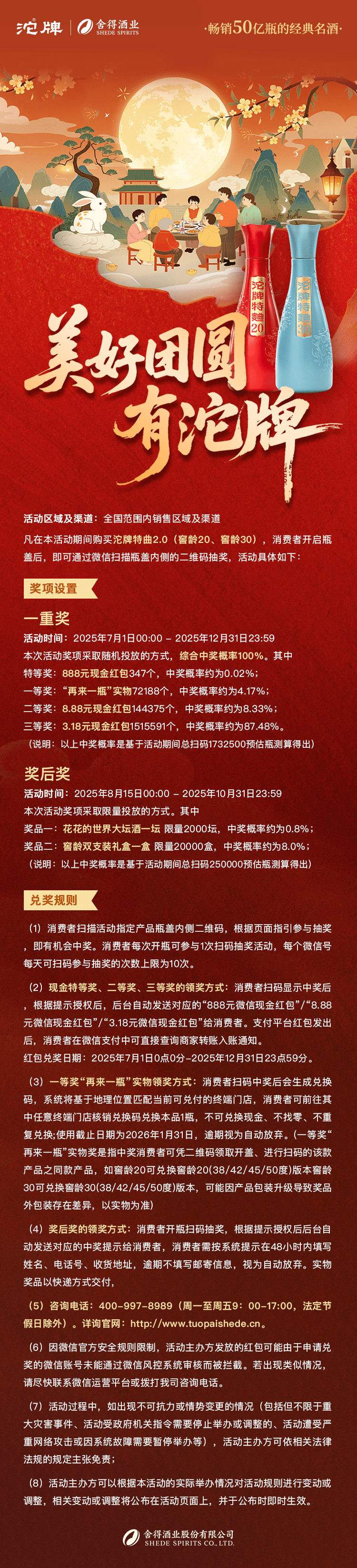 中秋喝沱牌特曲 享双倍惊喜 扫产品盖内码即享2次抽奖机会